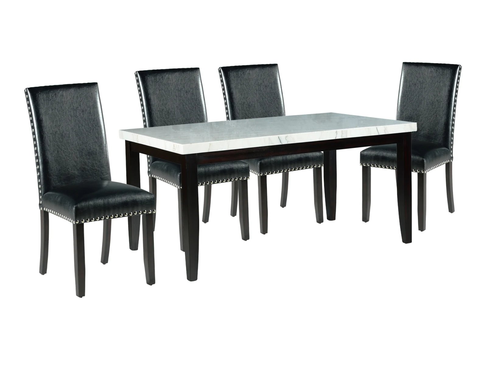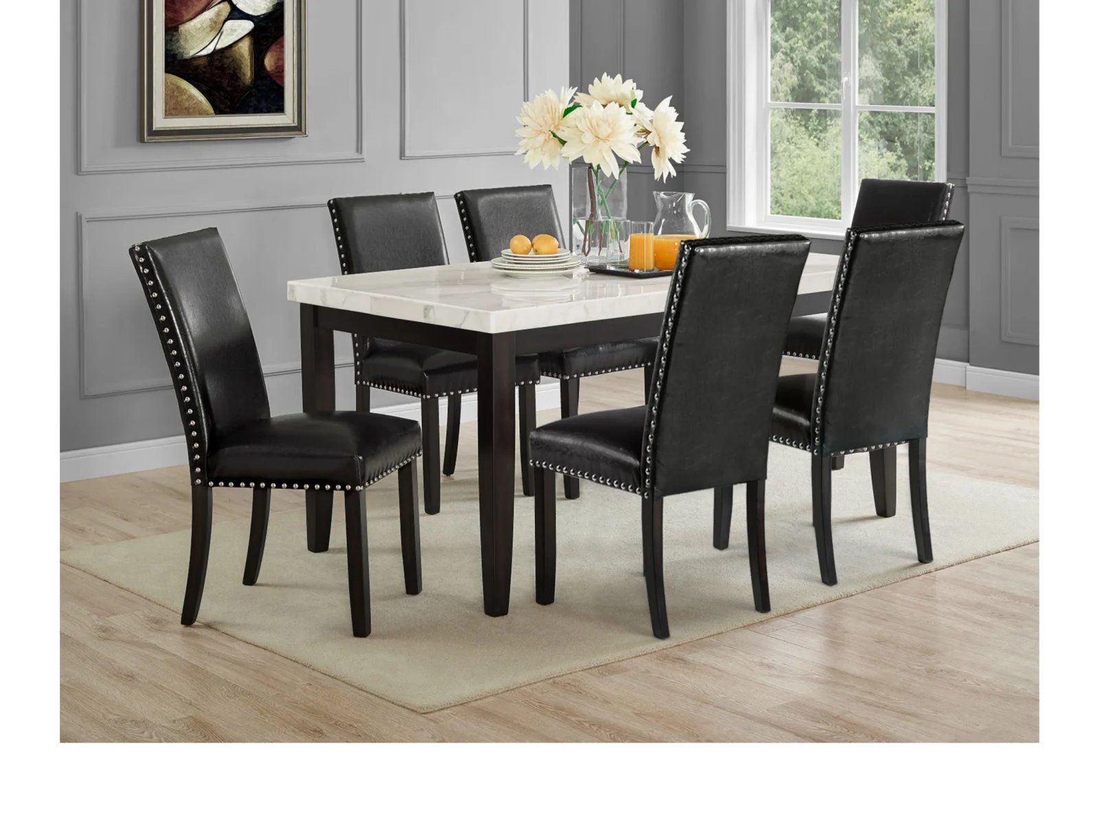 & Free ShippingA modern take on dining, the Wallace features a stunning white marble top with hints of black mineral accents that coordinates beautifully with the ebony pewter nailhead trim chairs and bench.