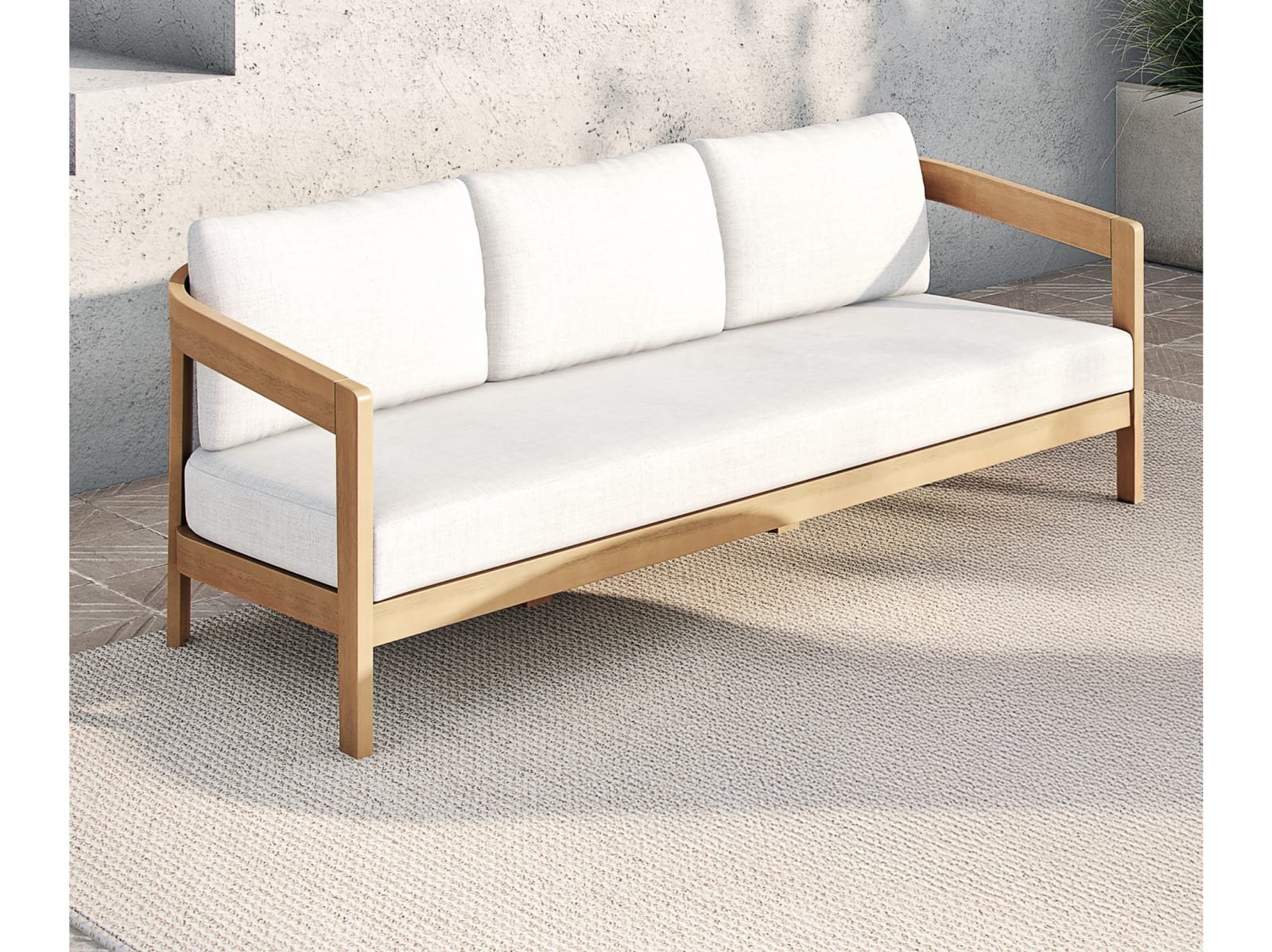 & Free ShippingThe Watford Patio Sofa blends minimalist style with everyday comfort, making it an inviting centerpiece for any outdoor space. Its sturdy acacia wood frame in a light finish brings organic warmth to the sofa’s sleek lines, track arms, and gently round edges, perfect for everyday lounging. It features removable cushions, adorned in crisp white weather-resistant Sandura fabric to deliver relaxation through every season. Bring a fresh, contemporary attitude to your patio with the Watford Patio Sofa!
