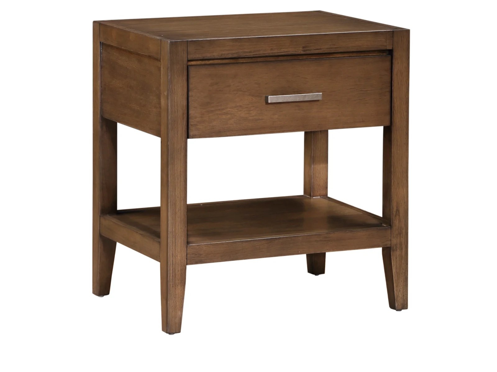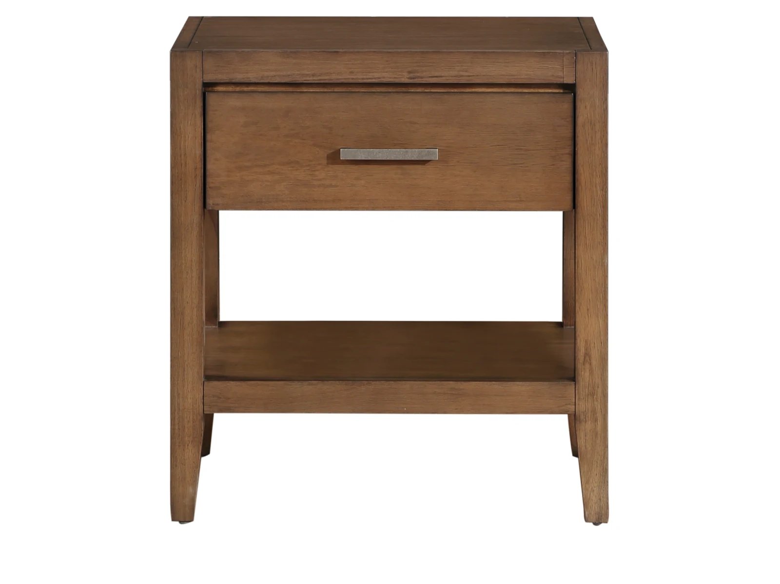 & Free ShippingThe Wezley Collection’s transitional style utilizes hints of modern design to create a versatile aesthetic addition to your bedroom. The unfettered lines of the nightstand present a classic profile. Antique brass finished bar-pull hardware fronts the drawers of the case pieces. A light brown wire-brush finish is utilized to further the stylistic versatility of the collection.