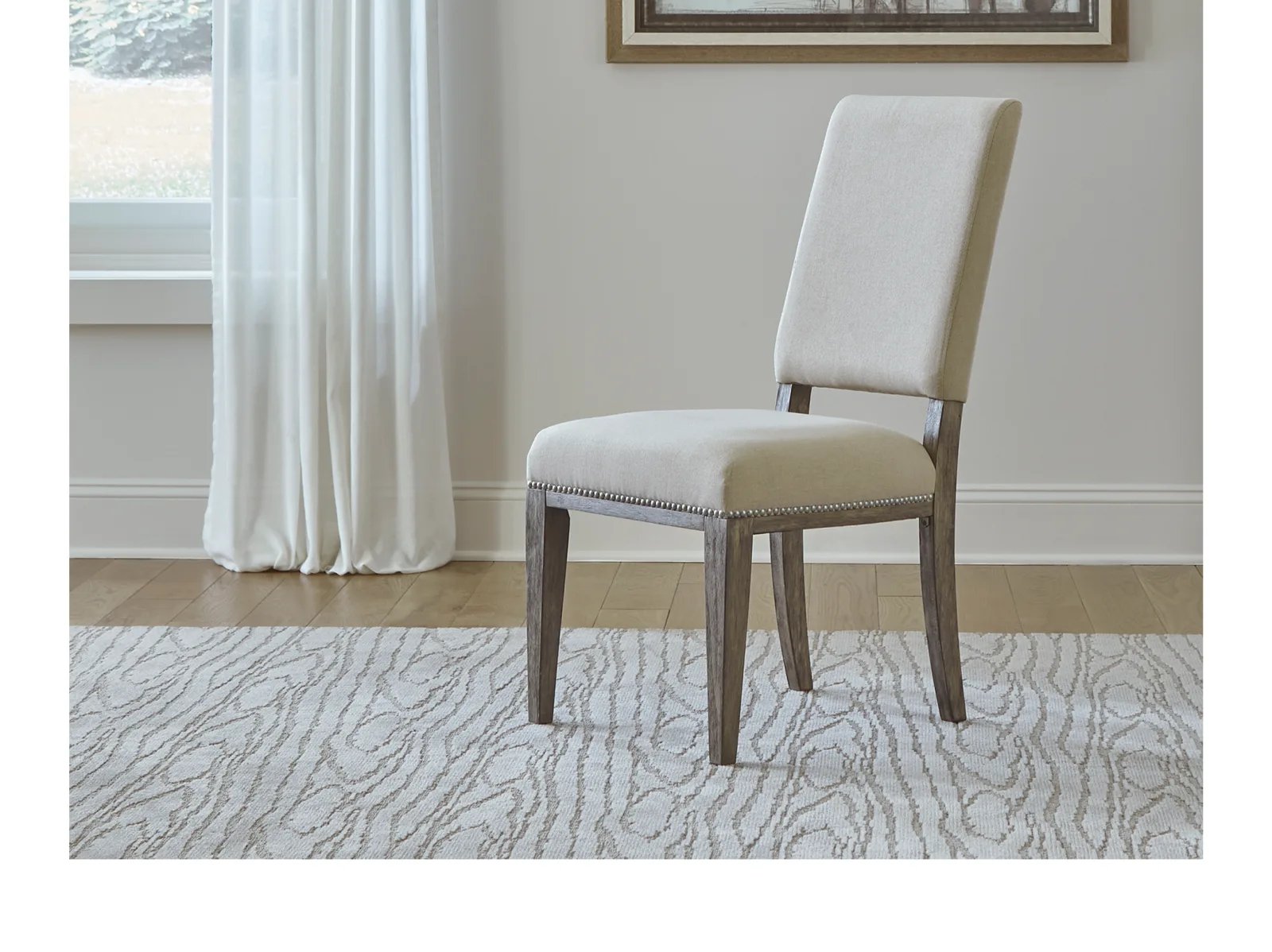 Comfort starts and ends with the Whitfield upholstered Dining Chair. Crafted with excellence using rubberwood solids, this chair features a Havana Brown finish and Sand colored upholstery. Nail head accents line the seat trim. The tapered legs feature nylon chair glides to protect your flooring. The Whitfield upholstered Dining Chair offers a design that combines for a grand feel of the past with today’s luxurious lifestyle.