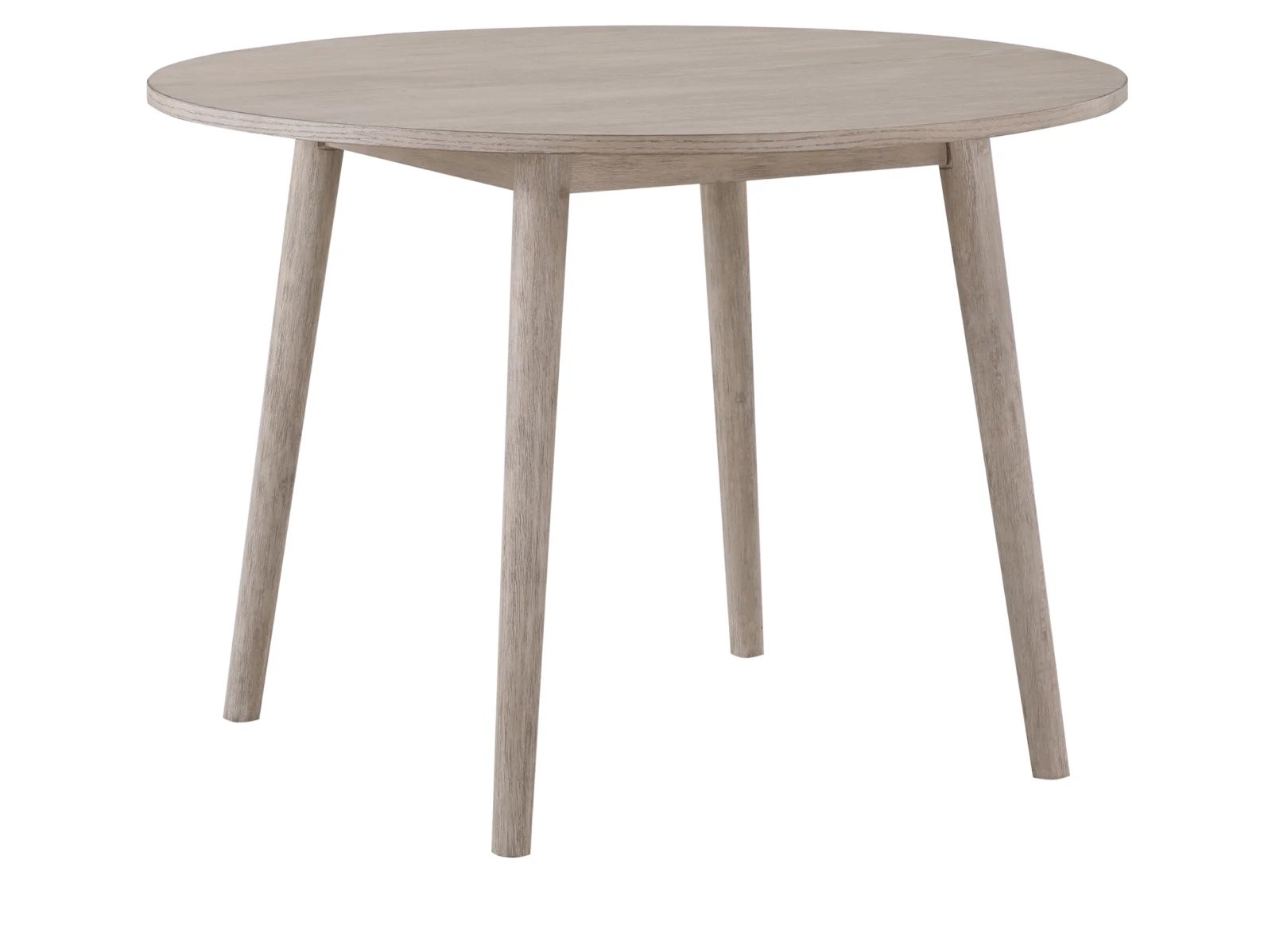 & Free ShippingA charming cottage dining set with a mid-century modern twist. The 42″ round tabletop features a Sun bleached Driftwood finish that shows off the attractive Ash veneer grain. The table is supported with attractive Pencil Style legs. The solid wood chair tucks nicely under the table top making this dinette perfect for smaller spaces.