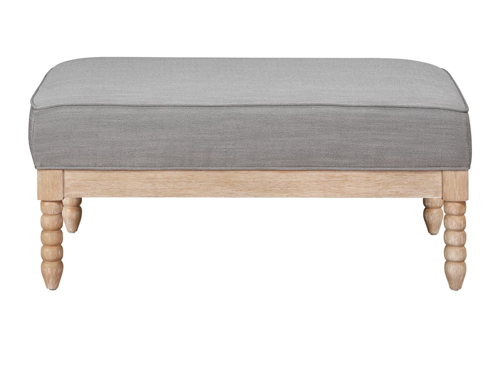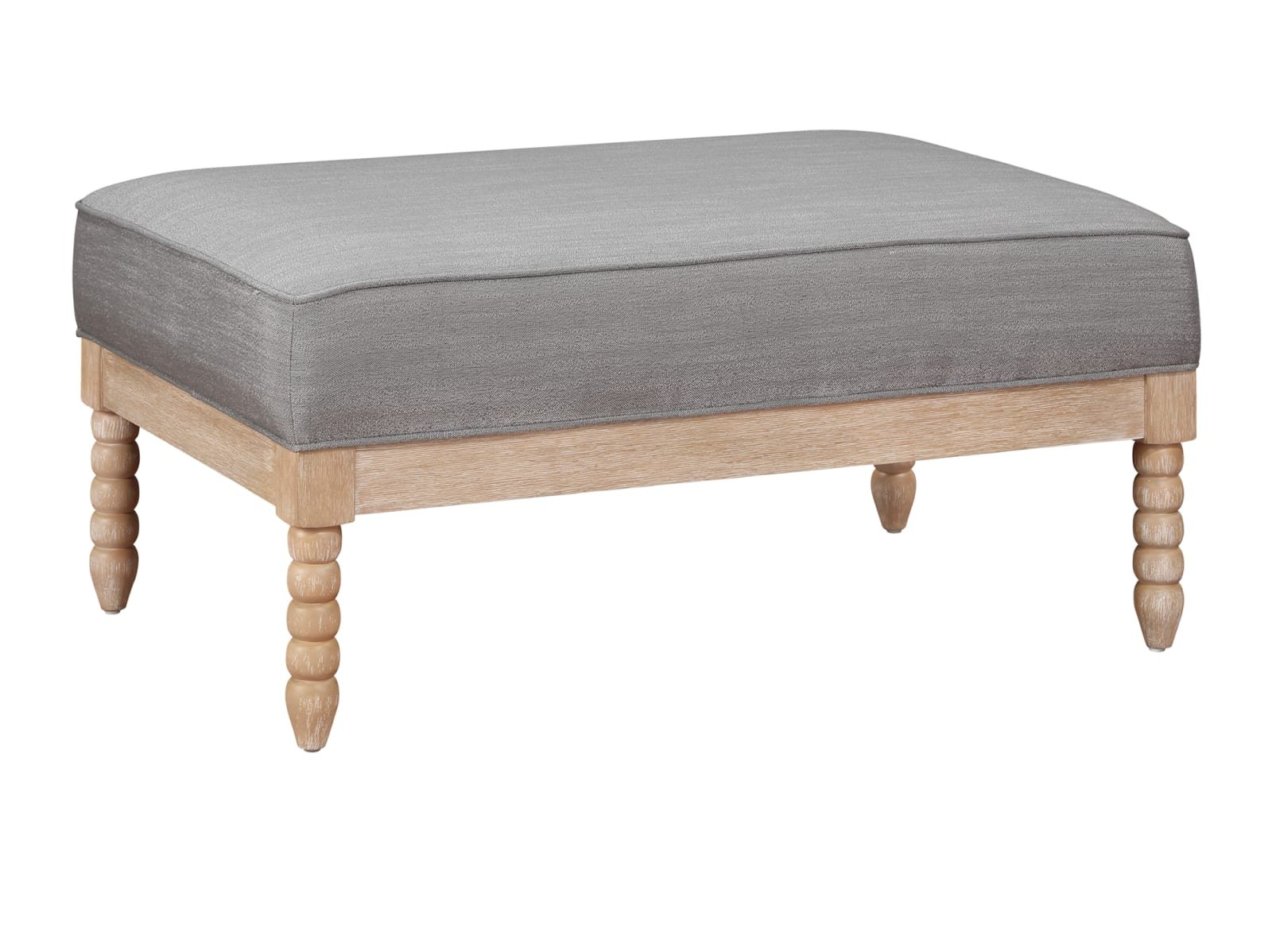 Complete your living room with the stylish and functional Windham Ottoman. Upholstered in soft gray fabric, this ottoman adds both comfort and character to your living area. The ball-turned wood legs in a natural finish provide a classic touch that complements the coastal-inspired design. Use it as a footrest, extra seating, or even as a casual coffee table with a tray on top. The Windham Ottoman’s versatility and timeless appeal make it an essential piece for any well-designed living space.
