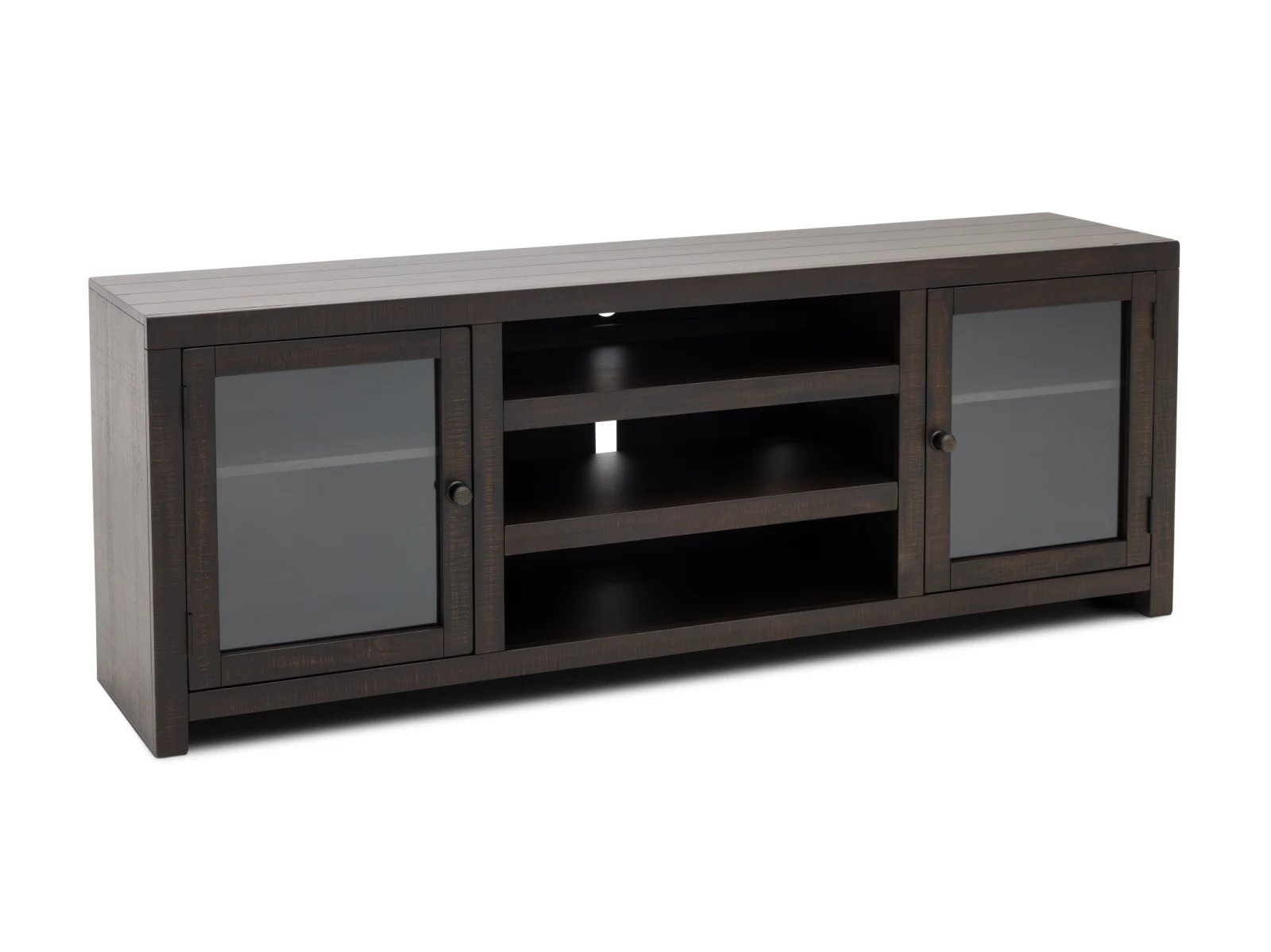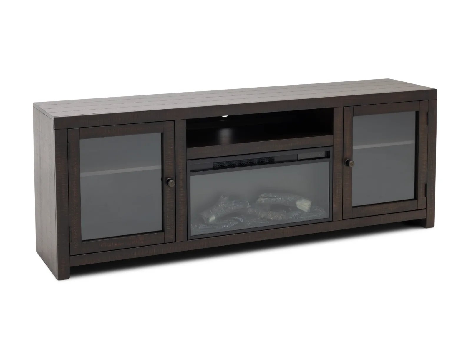 & Free ShippingThe Winter Park Fireplace TV Stand combines rustic elegance with modern functionality, making it a standout addition to your living space. Crafted from durable mahogany solids and veneers, it features a dark tobacco leaf finish, hand-sawn distressing, and a planked top for a timeless mountain-inspired aesthetic. This versatile piece includes a remote-controlled electric fireplace that provides cozy supplemental heat and year-round ambiance, and it’s designed to accommodate TVs up to 65 inches. It also offers practical storage with two glass-front cabinets and a central media shelf for your entertainment essentials. Transform your home with the Winter Park today!