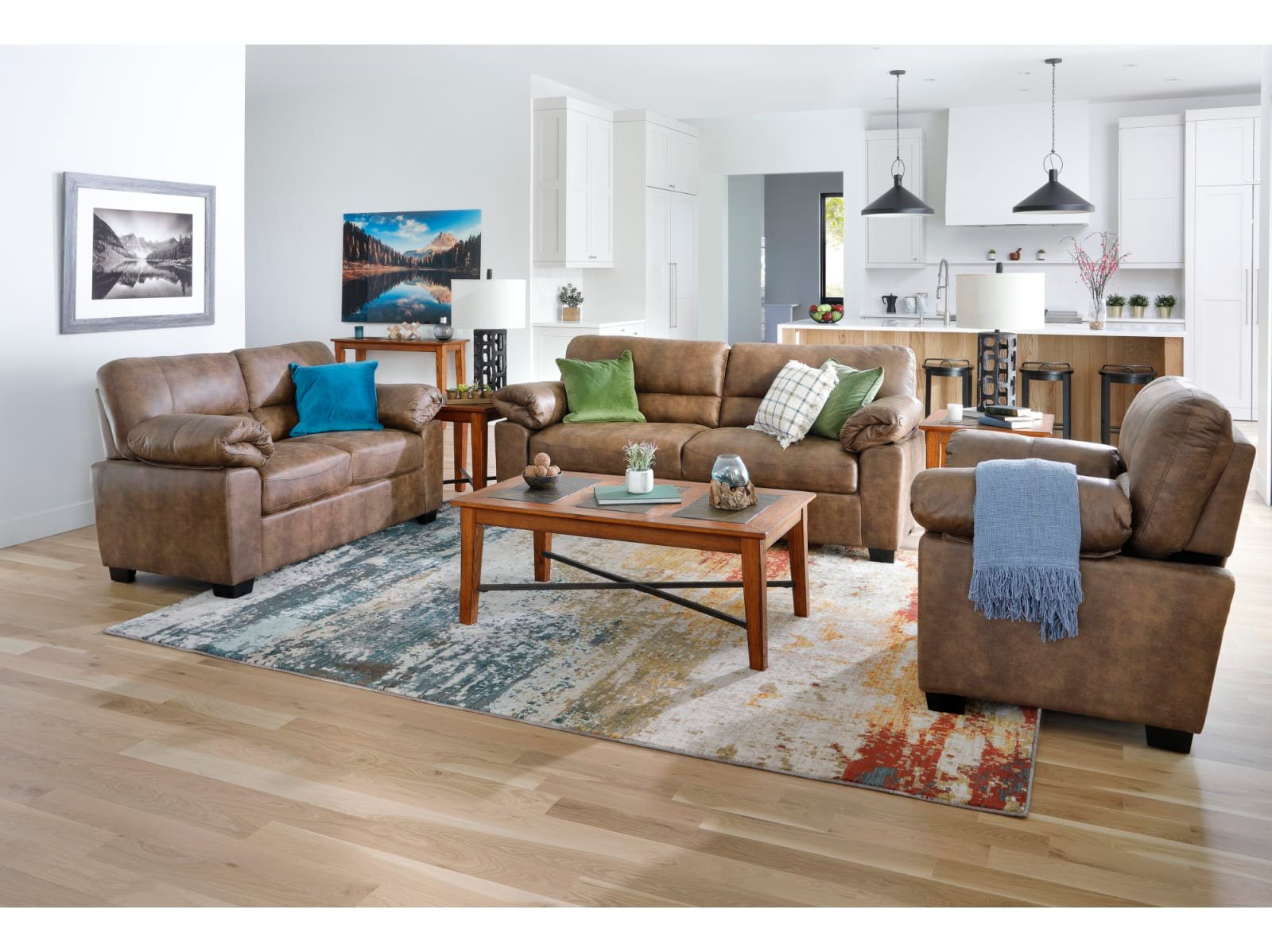 With premium comforting features and high-quality craftsmanship, the Wrangler Sofa is sure to become your new favorite seat in the house. This enticing sofa rests on a sturdy hardwood frame, and it’s upholstered in a velvety-soft fabric that instills a timeless leather-like appearance. The Wrangler’s generous seating area features a robust individually-wrapped coil support system, its overstuffed seat cushions are filled with luxurious high-density foam, and its clean-lined track arms are topped with oversized padded cushions to ensure unparalleled comfort in any position. Treat yourself to a sofa with style and substance, take home the Wrangler Sofa today.