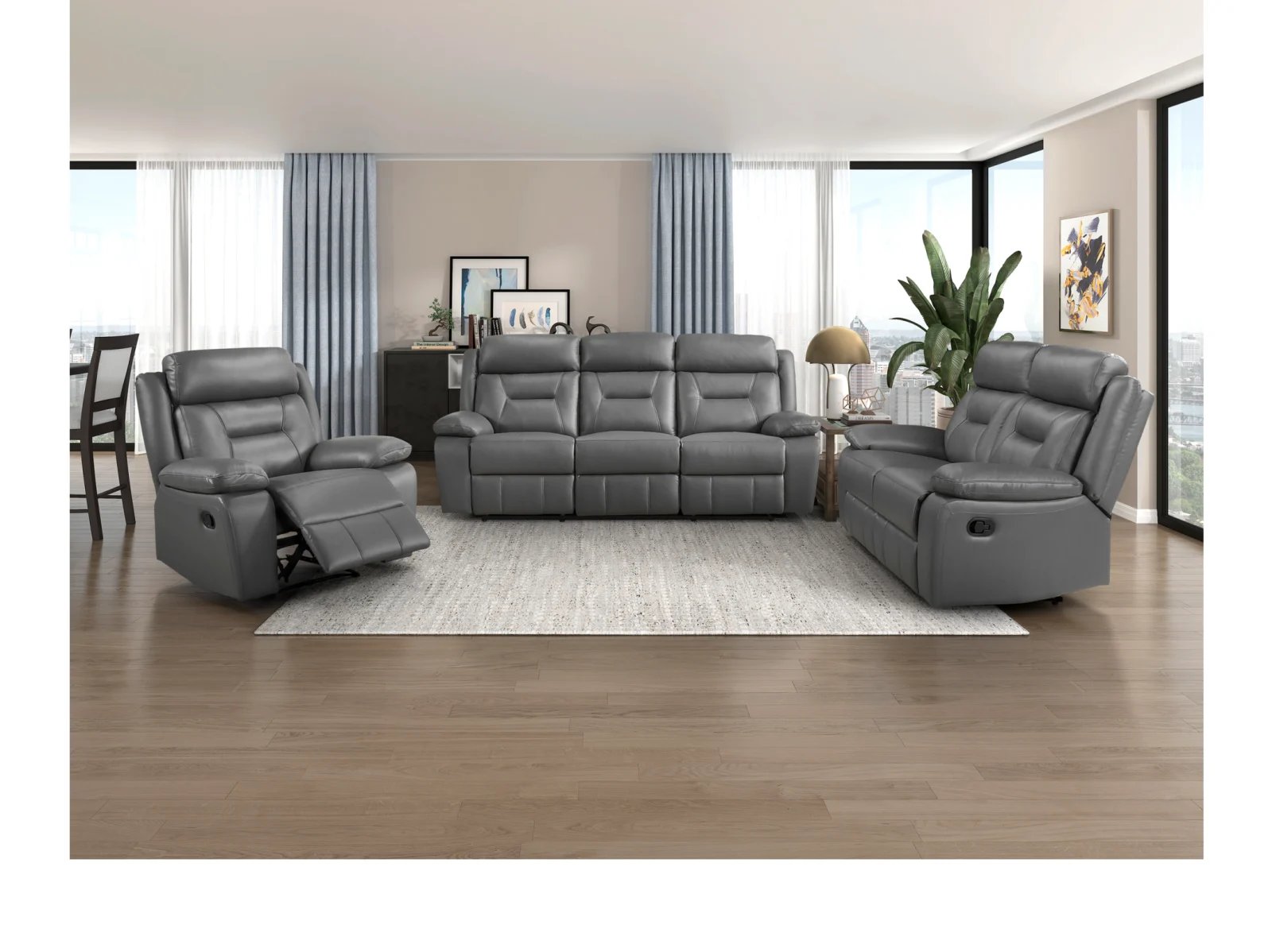 Sink into luxurious comfort with the Yantis Reclining Sofa. Upholstered in supple, gray leather, this sofa offers a contemporary and sophisticated look for your living room. Its plush cushioning and reclining mechanism provide ultimate relaxation, while the sturdy frame ensures long-lasting durability. The three-seat design is perfect for family movie nights or entertaining guests. The smooth reclining action allows you to effortlessly adjust to your preferred position, whether you’re watching TV, reading a book, or simply taking a nap. Upgrade your living space with the Yantis Reclining Sofa and experience the perfect blend of style, comfort, and functionality.