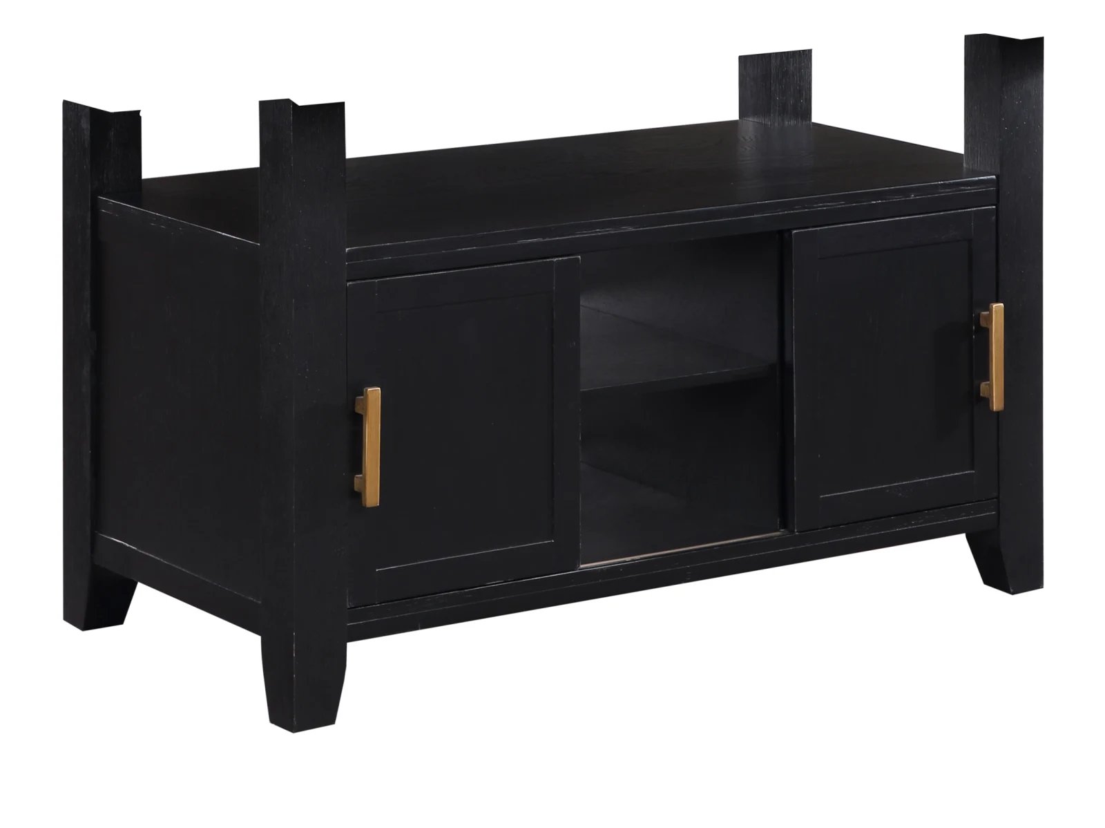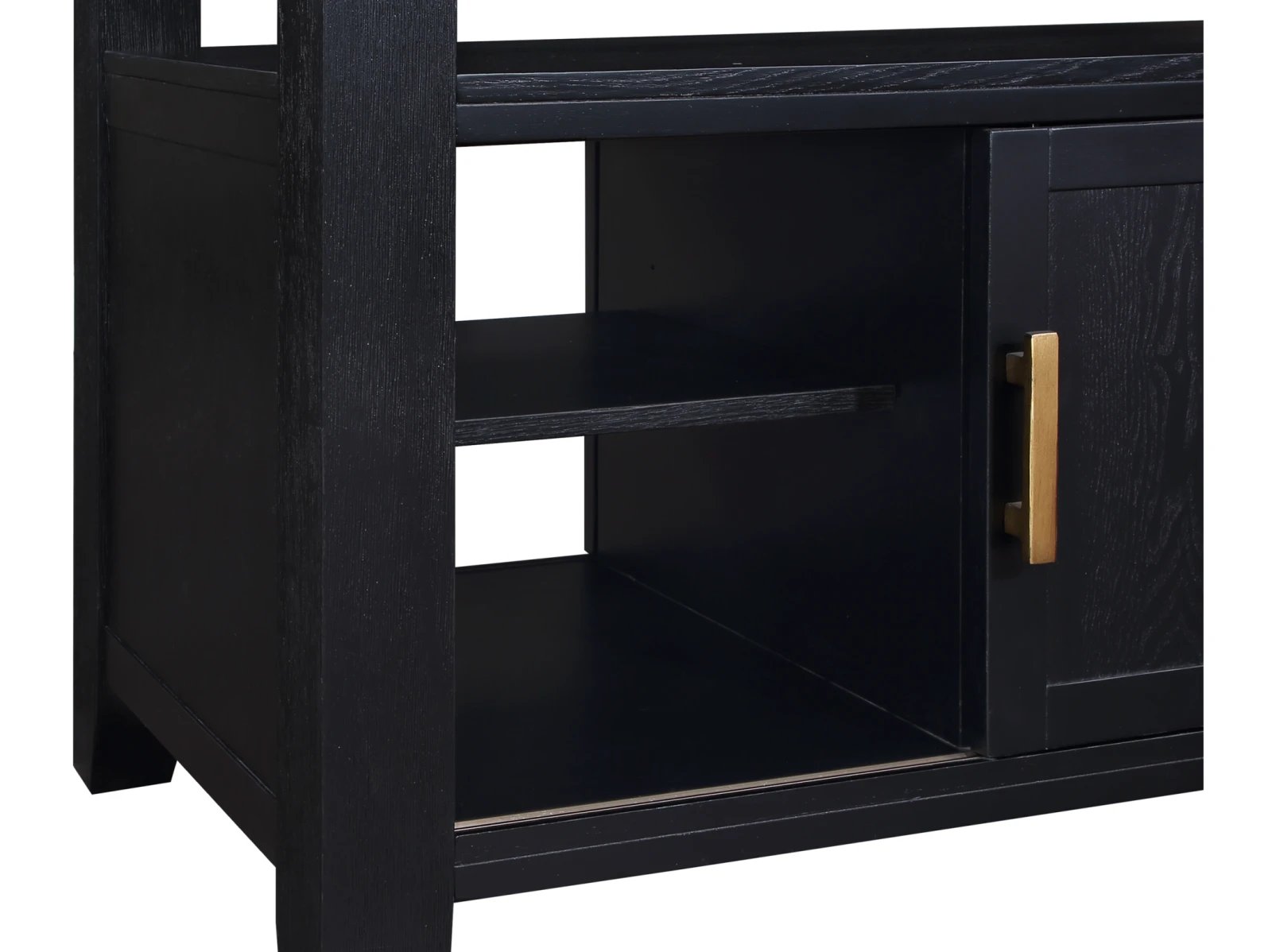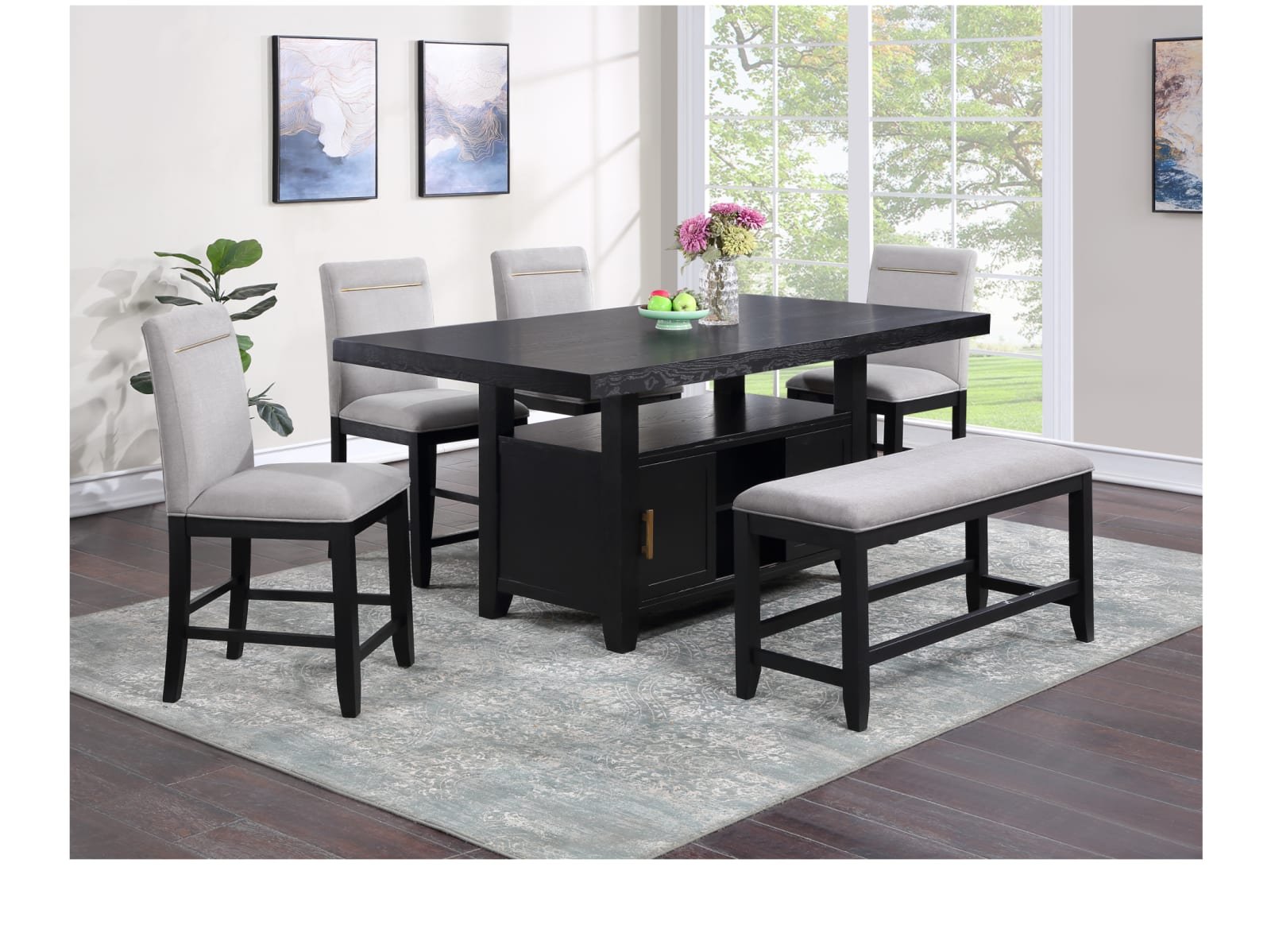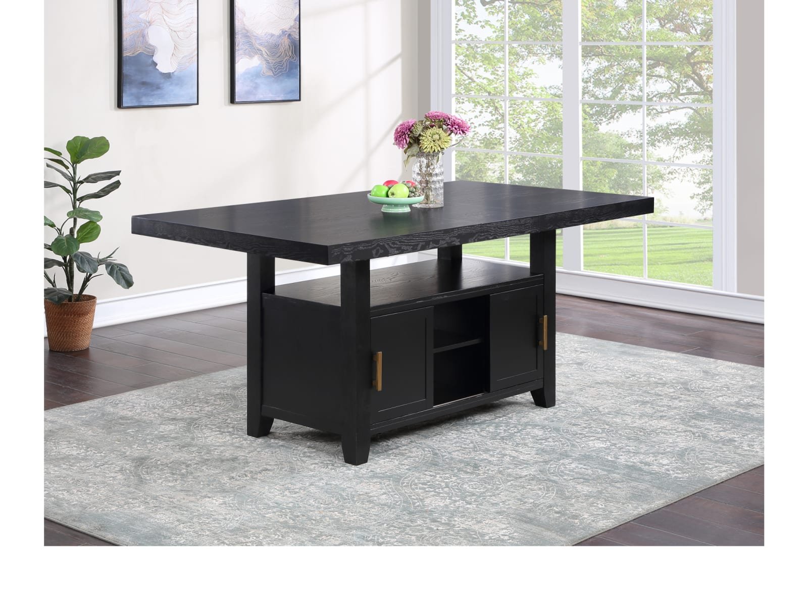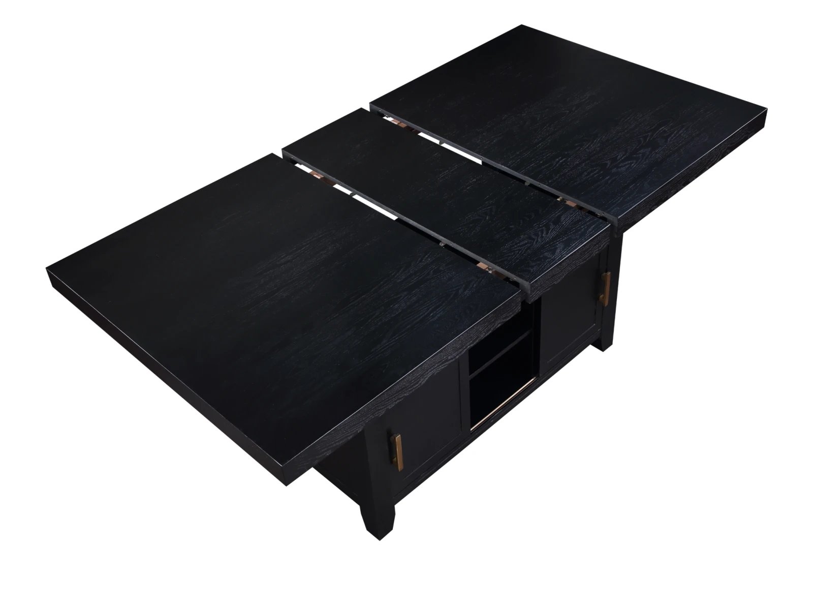Maximize your dining space with the Ymir Counter Height Storage Table. This architectural marvel is made of acacia veneers and hardwood solids, featuring a weighty floating top that extends to 78 inches with a 14-inch leaf. The built-in storage base adds functionality to its sleek design, perfect for modern homes seeking style and practicality. It all comes together in a rubbed charcoal finish, accented with gold hardware for the perfect touch of glamour to its versatile design. Dining won’t ever be the same with the Ymir Counter Height Storage Table.