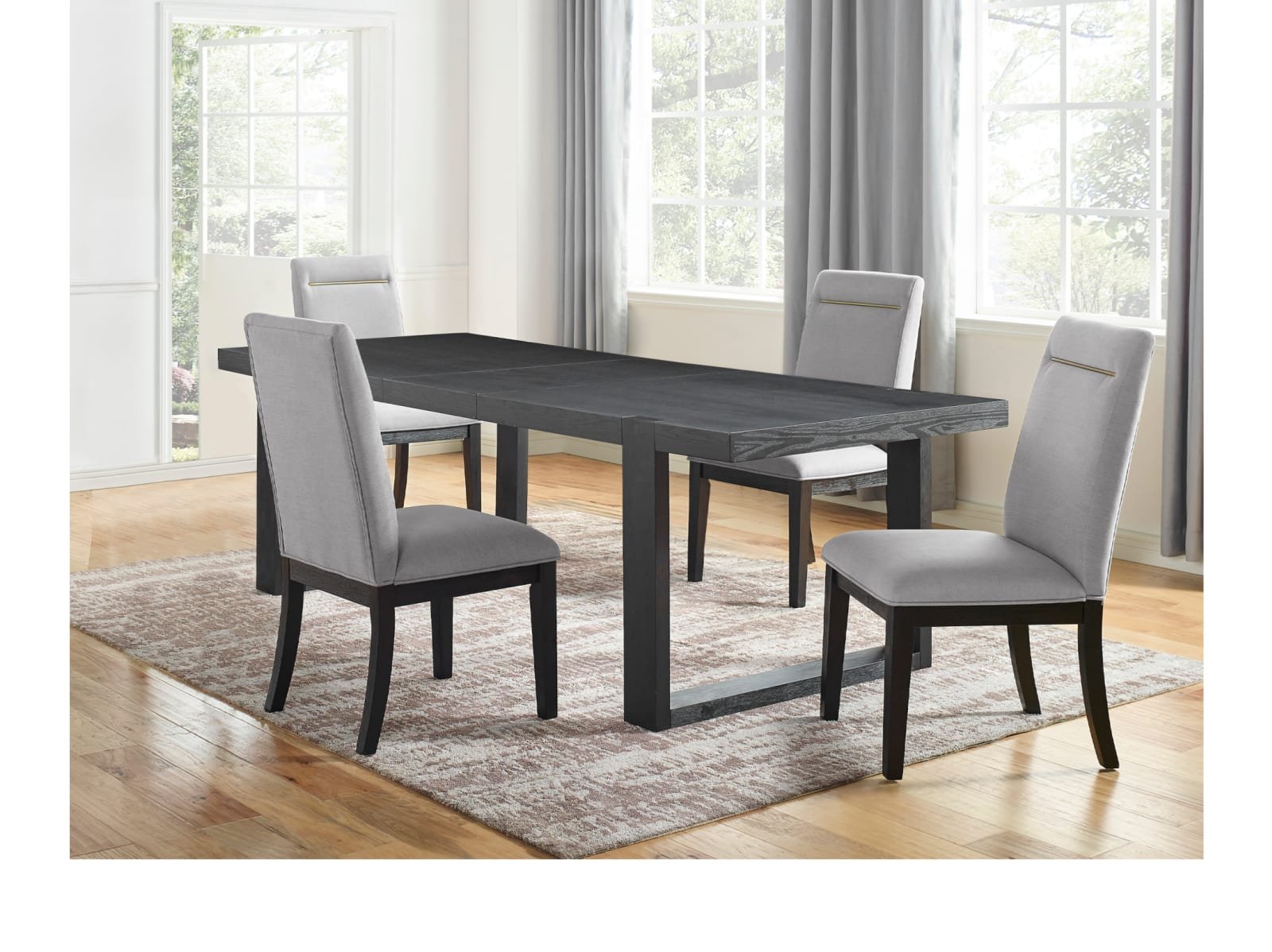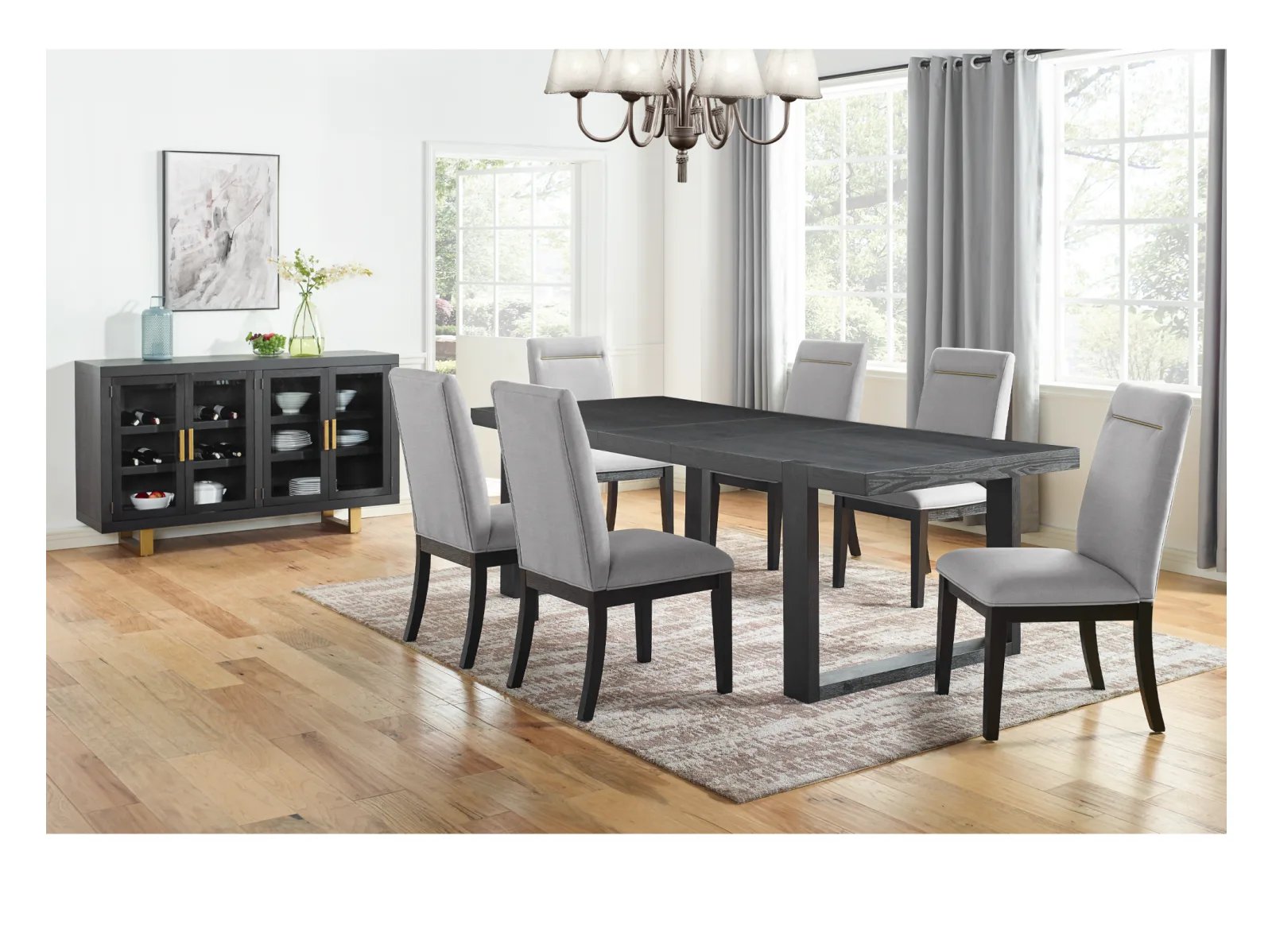 The Ymir Dining Table combines contemporary design with modern elegance to bring you a new kind of practical style. This dining focal point is composed of acacia veneers and hardwood solids for a quality profile that’ll last you years. Its impressive 96-inch top easily seats eight, while the weighty construction exude architectural quality. This table creates a stunning centerpiece for your dining area with its rubbed charcoal finish, adding depth and allure to both casual and formal dining experiences. Pair with the Ymir Dining Chairs for a standout arrangement. Give your dining room the glamour it deserves with the versatile Ymir Dining Table.