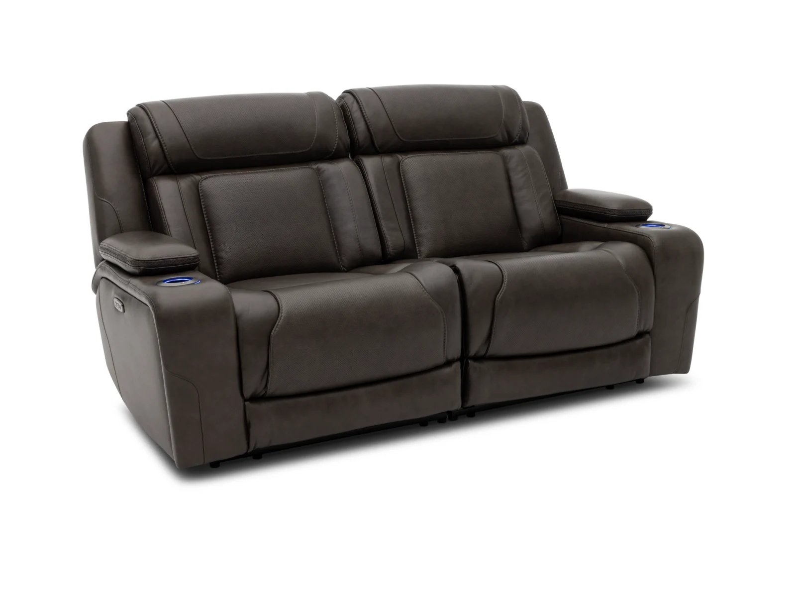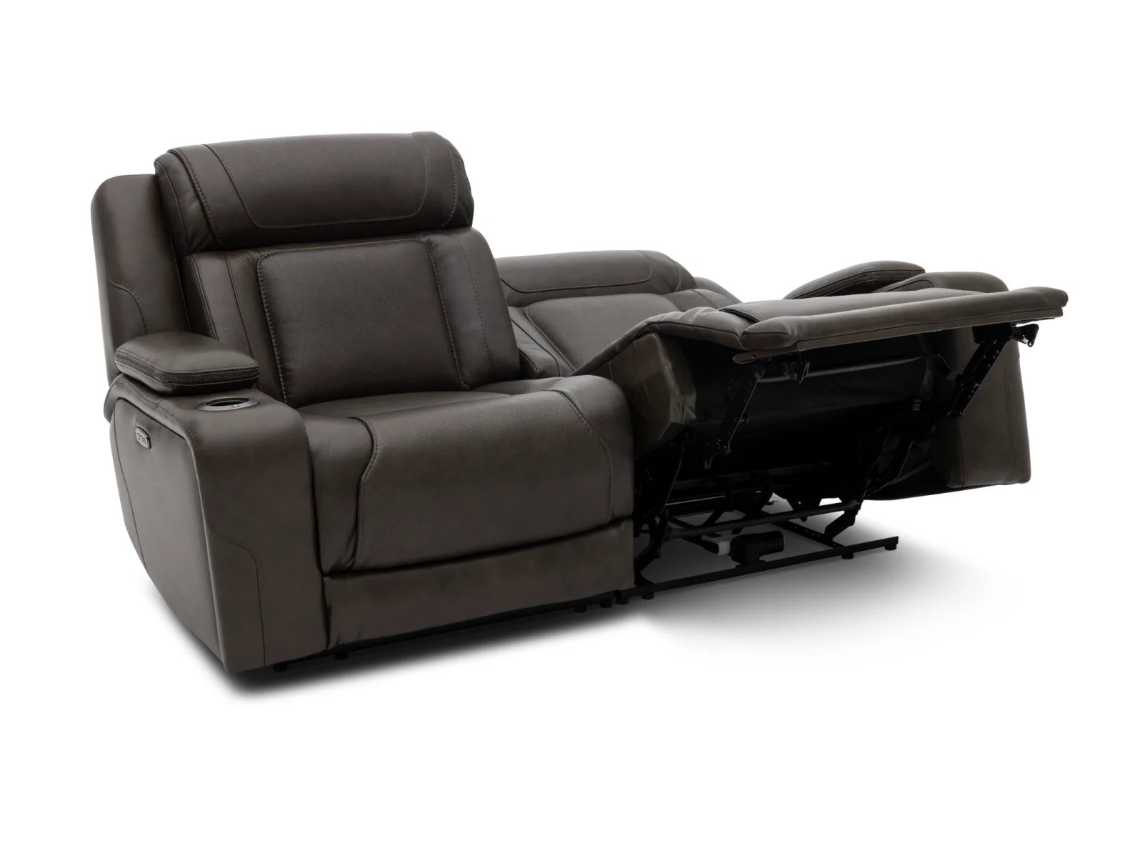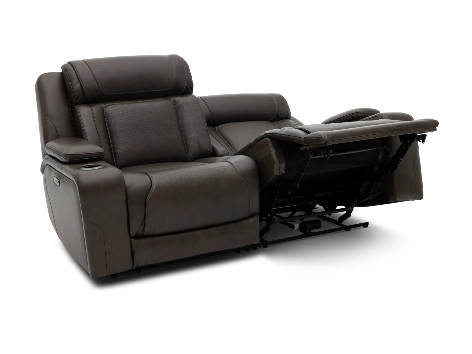 Indulge in shared comfort with the Yukon Power Reclining Loveseat. This compact yet luxurious two-seater boasts high-quality foam-poured seats and backs, making lounging both supportive and sumptuous. The Zero Gravity mechanism ensures optimal relaxation, while the roomy footrest extension provides added support. Wrapped in charcoal gray top grain leather, this loveseat comes accented with arc arms complete with hidden storage for all your lounging essentials. For a sophisticated touch to any beloved living space, choose the Yukon Power Reclining Loveseat!