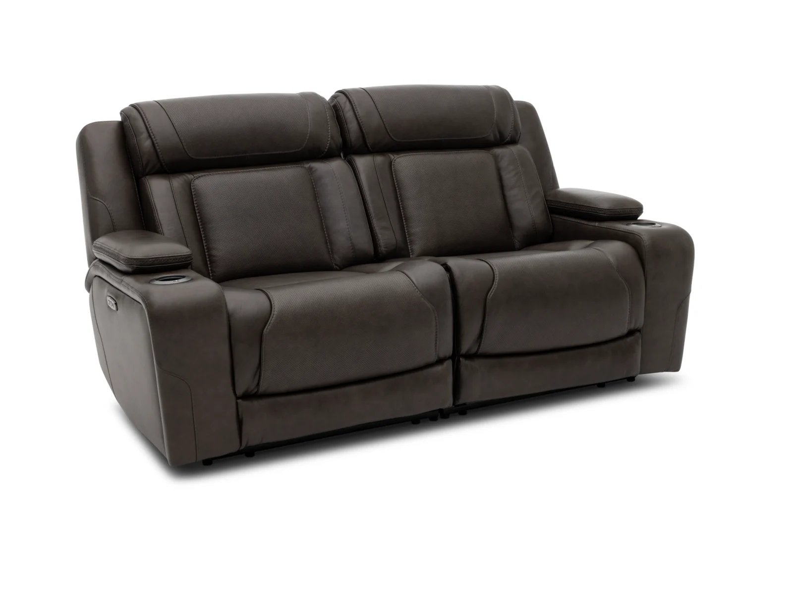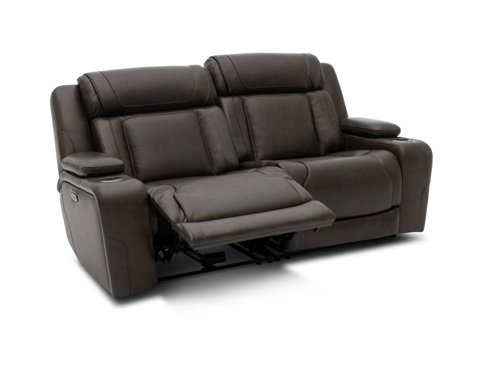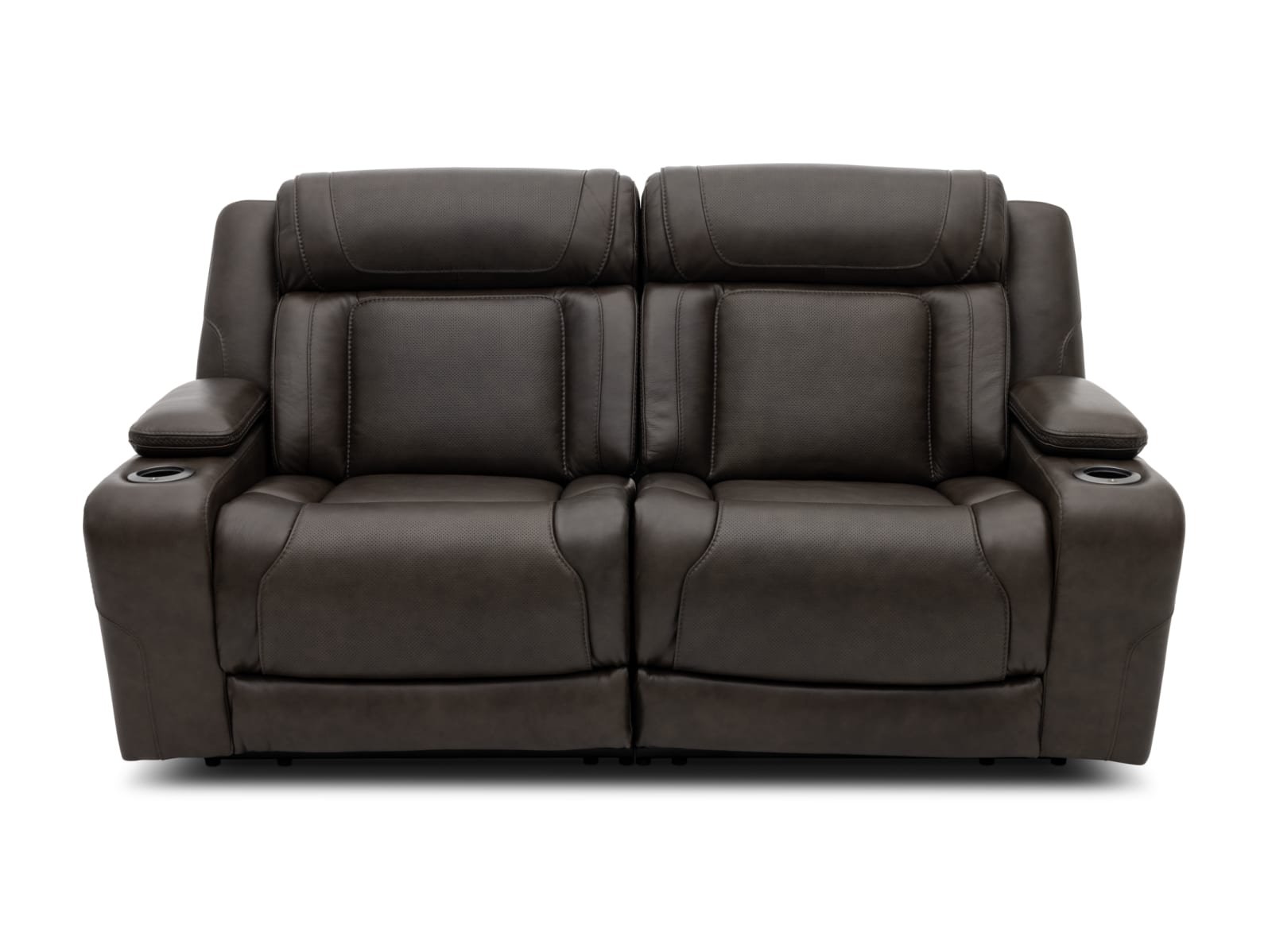 Indulge in shared comfort with the Yukon Power Reclining Loveseat. This compact yet luxurious two-seater boasts high-quality foam-poured seats and backs, making lounging both supportive and sumptuous. The Zero Gravity mechanism ensures optimal relaxation, while the roomy footrest extension provides added support. Wrapped in charcoal gray top grain leather, this loveseat comes accented with arc arms complete with hidden storage for all your lounging essentials. For a sophisticated touch to any beloved living space, choose the Yukon Power Reclining Loveseat!