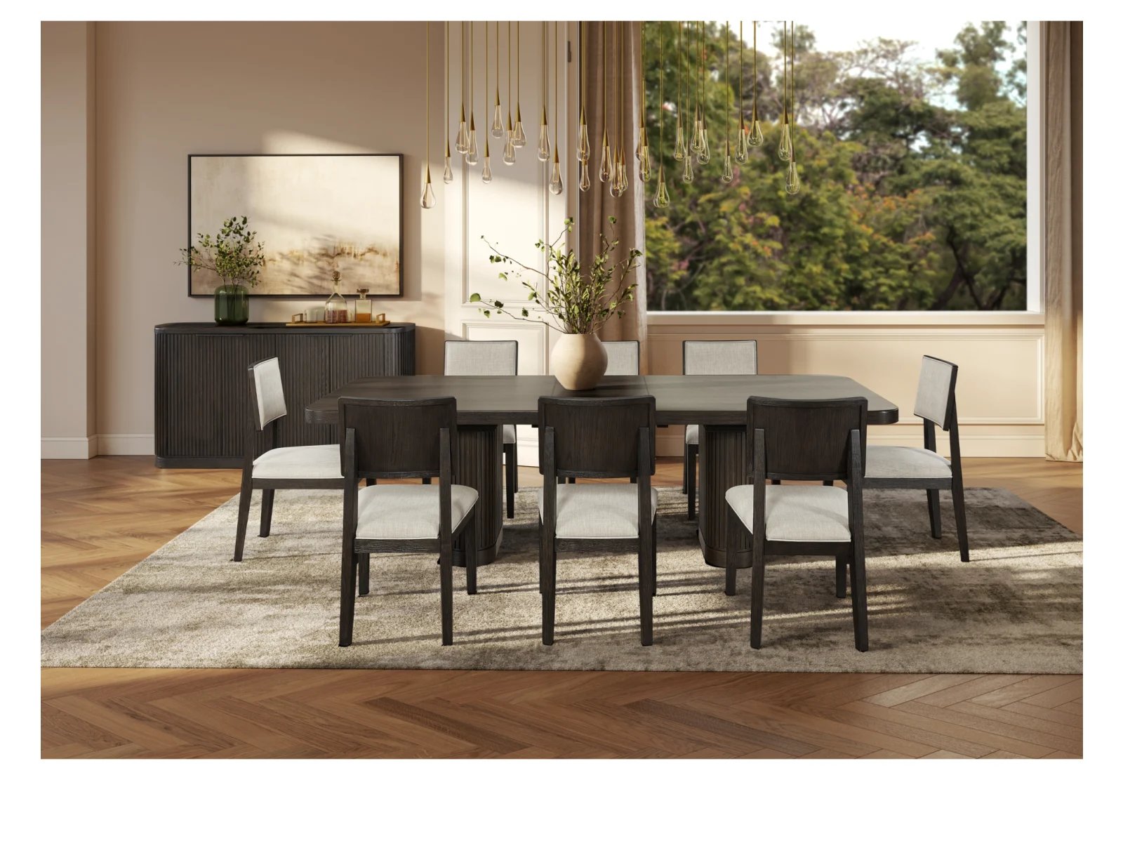 - Slat fluted tambour base detailing to enhances the contemporary style
