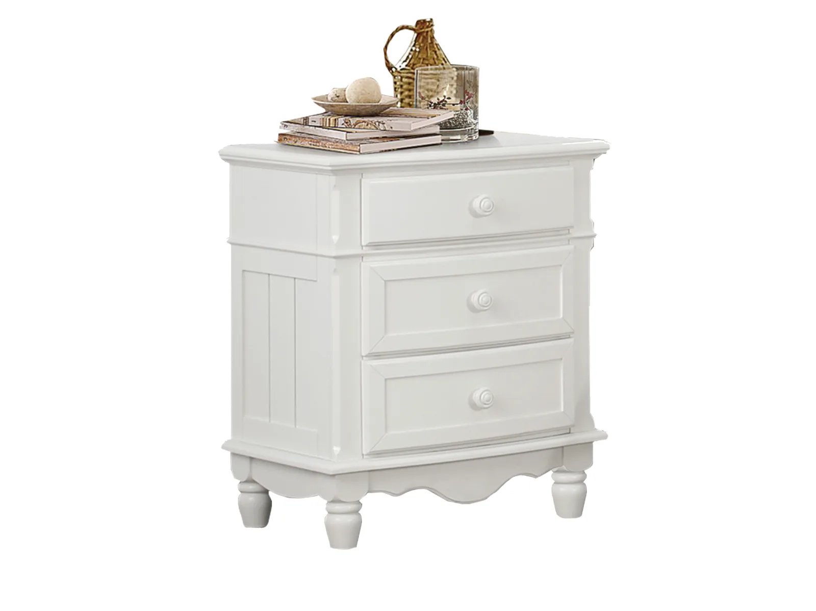 & Free ShippingThe Zori Collection will be a bright and classic addition for your children’s sanctuary. Scaled for your child’s bedroom, the nightstand features wooden knob hardware that stands boldly against its bow-front, while the additional decorative accents of framed bead-board paneling, turned feet and scalloped base further enhance the classic look of this lovely piece. Twin and full beds, bunkbed, full-size bottom bunk extension kit trundle, dresser, mirror and chest are also available.